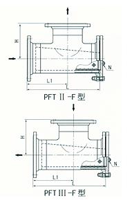 (7)T型法蘭連接反折流式過濾器(PFT III—F型)(DN50~400,PN≤5.OMPa)