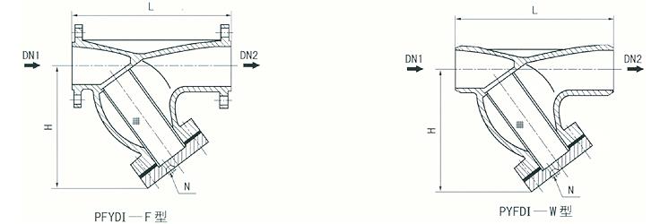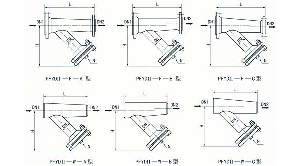 (3)Y型鑄造異徑法蘭連接式(PFYDI一F型)、異徑對焊連接式(PYFDI—W型)(DN40×32-250×200,PN≤5.OMPa)